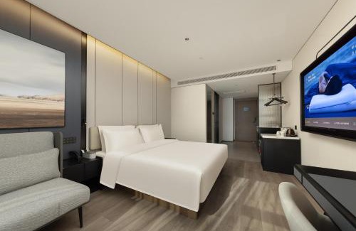 Providing free WiFi, Atour Hotel Chengdu Wenjiang Fengxihe Metro Station offers rooms in Wenjiang, 14 miles from Kuanzhai Ancient Street and 15 miles from Chengdu International Exhibition Center. The property is around 15 miles from Tianfu Square, 15 miles from Wuhou Memorial Temple and 16 miles from Wenshu Monastery. The property is non-smoking throughout and is located 14 miles from Du Fu Thatched Cottage. All guest rooms are equipped with air conditioning, a flat-screen TV with cable channels, an electric tea pot, a shower, free toiletries and a desk. All rooms include a private bathroom, a hairdryer and bed linen. Chengdu North Train Station is 16 miles from the hotel, while Chunxi Road is 16 miles away. Chengdu Shuangliu International Airport is 12 miles from the property.