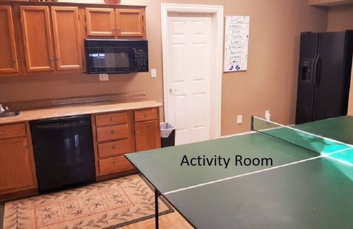 A deck is off the porch with a gas grill and an umbrella table. Our master bedroom has a king size bed, and a flat screen TV. There is a master bath with double vanity, Jacuzzi tub, ceramic shower with seat, TV and walk in closet. We have a first floor laundry with full size appliances for your use. The second floor has 3 well decorated bedrooms with 1 king, 1 queen and 1 double, 1 “jack and jill” full bath and 1 private bath. All the bedrooms have a TV. Our lower level has a large family room with 50 inch flat screen HD TV, a bar, a game room with ping-pong, and a walk out patio with table and chairs and a hot tub under roof. The 5th bedroom is on the lower level with a king size bed, TV, and a full bath.