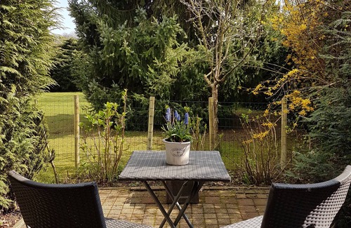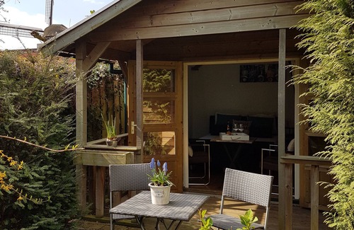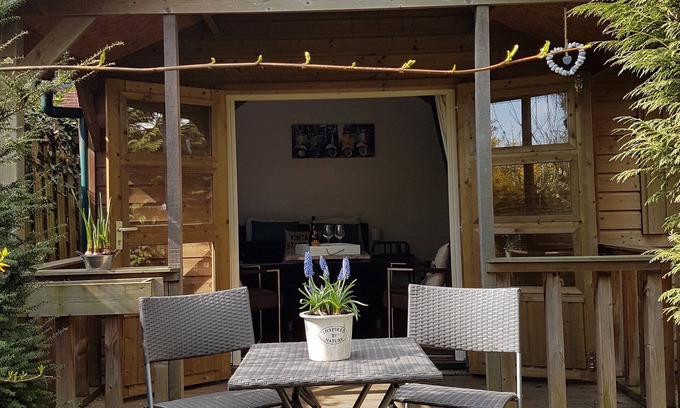 Attractive detached chalet with its own kitchen, bathroom, great bed and two sunny terraces.