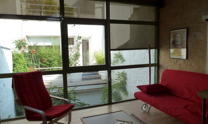 What happiness to stay in this house completely redone bright large bay, heated courtyard with flowers and trees with small seating area for coffee and dining area with large parasol, outside light and barbecue.