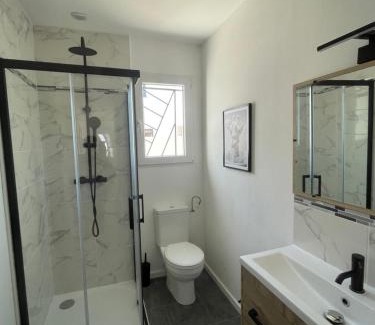 Providing a garden, Au bonheur du Sud offers accommodations in Olonzac. With free private parking, the property is 23 miles from Abbaye de Fontfroide and 25 miles from Reserve Africaine de Sigean. Outdoor seating is also available at the vacation home. Offering a terrace with mountain views, this vacation home also has a flat-screen TV, a well-equipped kitchenette with a dishwasher, a microwave, and a toaster, as well as 2 bathrooms with a walk-in shower. For added privacy, the accommodation has a private entrance and soundproofing. Fonserannes Lock is 26 miles from Au bonheur du Sud, while Saint-Nazaire Cathedral is 27 miles away. Carcassonne Airport is 25 miles from the property.