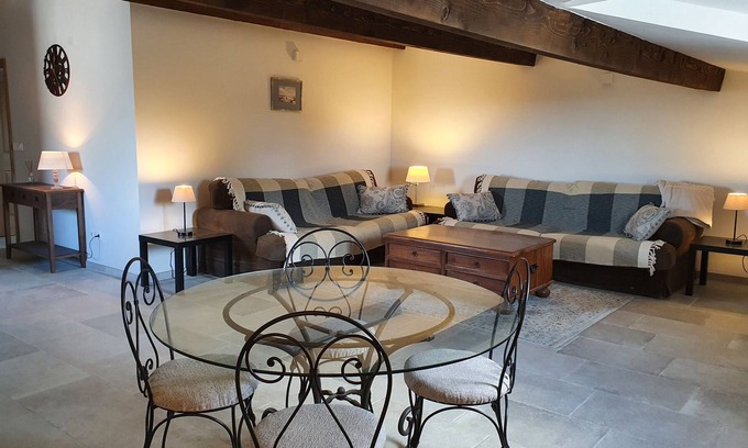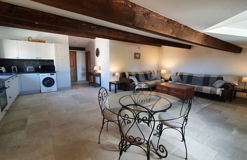 Very comfortable and fully-equipped independent apartment situated on the outskirts of a lively village surrounded by vineyards in the South of France, Occitanie (Languedoc-Roussilon).