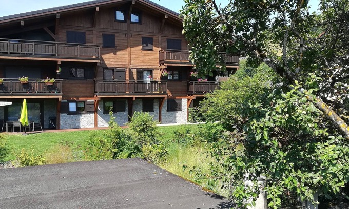 This gîte is located in a large chalet with 5 apartments, facing South/East/West, 5 minutes' walk from the village centre, 2 minutes from the children's playground, the indoor bowls pitch and the ice rink in winter.