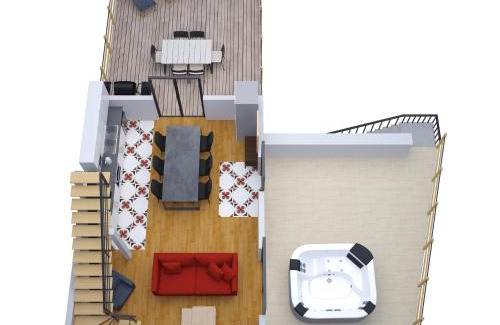 Au Pied De L'arcluse - Spa Clim offers accommodations in Saint-Pierre-dʼAlbigny, 16 miles from Halle Olympique d'Albertville and 21 miles from Fountain of Elephants. This property offers access to a terrace, table tennis, free private parking, and free Wifi. The chalet has a children's playground and a hot tub. The air-conditioned chalet consists of 2 bedrooms, a living room, a fully equipped kitchen with a dishwasher and a coffee machine, and 1 bathroom with a hot tub and bathrobes. A TV with streaming services and a game console are offered. For added privacy, the accommodation features a private entrance. There is a garden with a barbecue at this property, and guests can go cycling and hiking nearby. SavoiExpo is 22 miles from the chalet, while Chambéry Train Station is 21 miles from the property. Chambéry-Savoie Airport is 27 miles away.