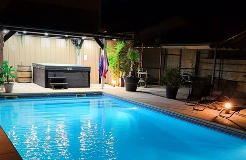 Relax by the heated pool or sip a drink on the deck or patio of this guesthouse, which also features a firepit and outdoor furniture. As for the great indoors, you can come inside and enjoy the WiFi and TV.
