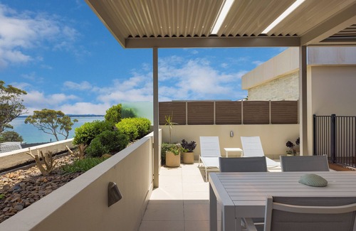 Aura Apartments are located across the road from Shoal Bay Beach. You will love staying in this modern, spacious and stylish air conditioned place with covered outdoor areas to enjoy on both living level and upstairs at the roof top BBQ entertainment area with hot tub.