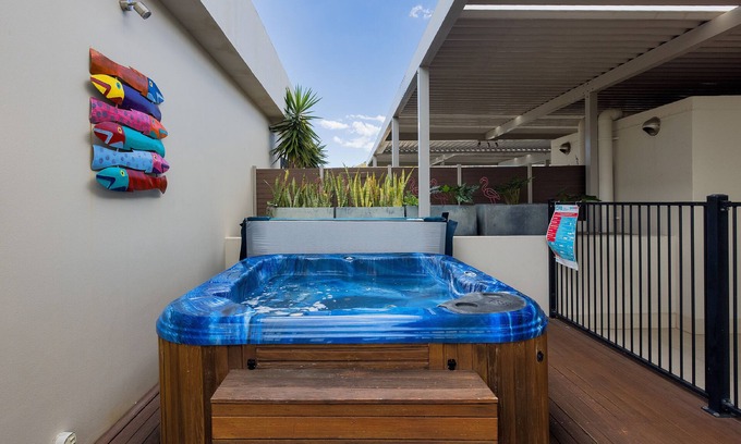 Internal apartment stairs take you up to the absolute highlight of this property – the fabulous rooftop courtyard with its own private spa and outdoor kitchen with BBQ, sink and dining setting, perfect for those lazy afternoons and cruisy holiday evenings.