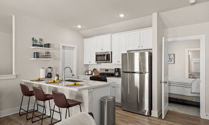 We provide a fully functional kitchen, super FAST Wifi (Fiber internet), 4K smart TVs, Working area & backyard areas. Spacious parking garage and driveway.