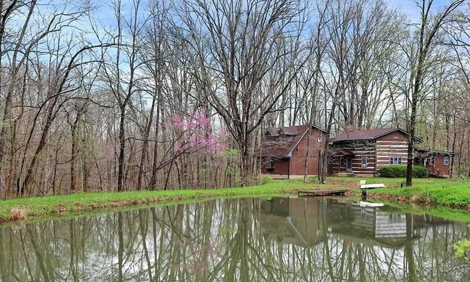 This beautiful hand-hewn log home sits on 3 wooded acres and features a pond and outdoor firepit. Although the feel is rustic, you will enjoy modern comforts like central air, washer and dryer and very comfortable beds.