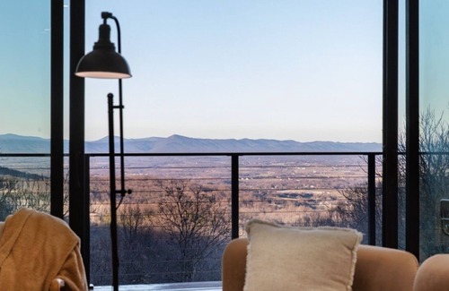 Enjoy a sunken bed for stargazing in the loft, a 7-person hot tub, a Blackstone and breathtaking valley views.