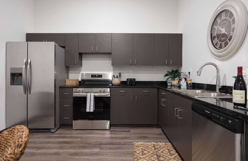 Experience premium comfort just 5 miles from XNA in Northwest Arkansas' first luxury accommodation near the airport. This modern one-bedroom condo offers business travelers a sophisticated base with all the essentials for a productive stay. Enjoy seamless travel with our convenient location—less than 10 minutes from the airport and 15 miles from Downtown Bentonville.