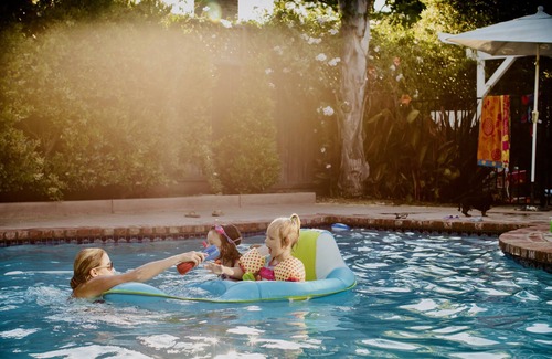 The pool and hot tub area in the back yard is fully safety fenced, and our front yard has a large lawn area with a picket fence and retractable screen for the driveway so it too can be fully contained (although the front yard picket fence/screen is not fully child-proof: little Houdini’s can get through). The front door is a dutch door so you can open the top half of it for fresh air when you are inside or if you want to say hey to our neighbors. They are all WONDERFUL! Speaking of which… this is a family friendly neighborhood and we ask that you be mindful and respectful of that. Aka no ragers, k thanks ;).