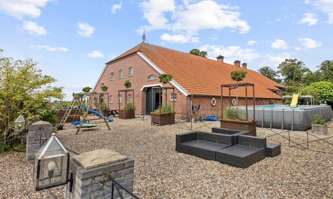 Welcome to your stylish beach house, a lovingly furnished holiday apartment in a listed 19th century Gulfhof. Situated directly on the Leda, surrounded by vast nature, a place full of peace, charm and relaxation awaits you here. The spacious apartment is located in the former stable wing of the historic farmhouse and has been renovated with great sensitivity. Bright colours, maritime elements and high-quality furniture create a cosy feel-good atmosphere. Here you can enjoy East Frisia at its best. You can cook to your heart's content in the large, fully equipped kitchen, while board games and relaxing evenings on the sofa await you in the living room.