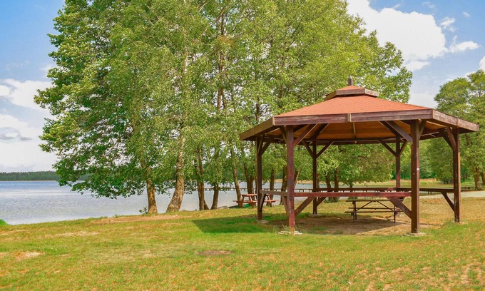Here you are located directly at the beautiful lake Jezioro Dominikowo, which offers you a sandy beach and bathing jetty, thus you can ideally swim and fish here. In addition, there is also a boat rental, which means that you can also paddle on the lake. Nearby is also the Drawa National Park, where you can listen to the birds while hiking or go kayaking on one of the rivers, Korytnica or Drawa Kayak. Also take advantage of the forest area that surrounds the lake to ride a bike or jog a lap in beautiful nature.
