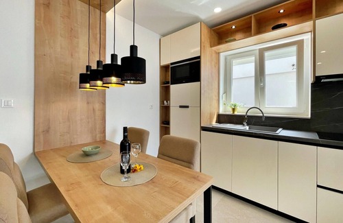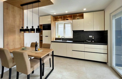 Welcome to the beautiful apartment, which welcomes you in a fantastic location by the sea and where you can spend a wonderful seaside vacation. Inviting interiors with tasteful, high-quality furnishings and subtle colors make for a pleasant vacation. Relax on the sofa with a view of the sea and enjoy your vacation in a stylish ambience.