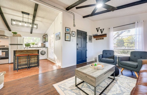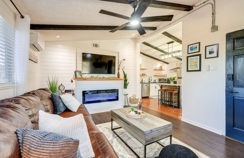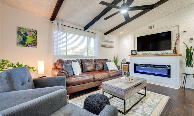 Treat your loved ones to a long-term Canyon Lake retreat at this 2-bed, 1-bath vacation rental! This home features an open living room with a Smart TV, a fully stocked kitchen, and a spacious outdoor area fit for the whole group. Take a morning stroll through James C. Curry Nature Center, ideally located on-site, then launch your boat at the nearby ramp and enjoy lake life at its finest! Wind down back home with a barbecue on the charcoal grill or sip cocktails on the rooftop deck.