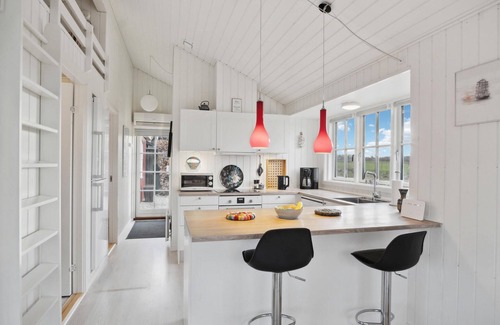 Welcome to this cosy holiday home, which is particularly homely with its Swedish red exterior and bright interior. The cosy house promises you a relaxing stay, as you can let your gaze wander over the fjord through the mullioned windows while relaxing on the sofa. Fire up the wood-burning stove and cook meals together, which you can enjoy at the dining table.