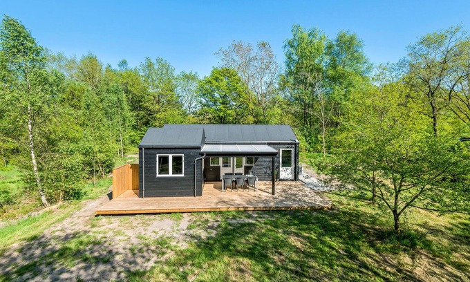 Located in the middle of Jutland, your compact vacation home welcomes you to a peaceful vacation far away from everyday life at home. The house impresses with its cozy and inviting atmosphere and stylish furnishings. The exterior is in classic vacation home black. In the morning, prepare a delicious breakfast for the whole family in the spacious, open kitchen and then enjoy the comfortable seating in the living area while enjoying activities together.