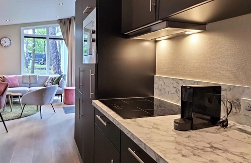 Your holiday home is located in a small forest, surrounded by beautiful meadows, in a holiday park. Make yourself comfortable in your holiday home in the morning with a freshly brewed cup of coffee in the living room, enjoy the beautiful view outside and plan the day ahead. After your activities, return to the tastefully furnished rooms and spend cosy evenings on the inviting sofa.