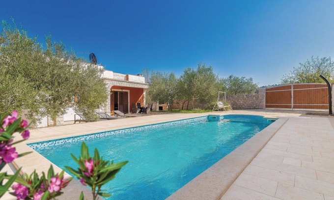 Spend a pleasant vacation on the island of Murter, in this beautiful pool house on the outskirts of the village Jezero. It is located on a spacious and fenced plot in a very quiet and green environment. This tastefully and functionally furnished vacation home will meet your needs. Take a walk to the center of the village where you will find various facilities. Enjoy the swimming pool or the nature and the beautiful sea at one of the surrounding beaches. Taste the specialties of this region in one of the restaurants and feel the charm of this small Dalmatian town.