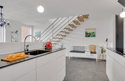 Enjoy a relaxing family vacation in this comfortable vacation home on the water. The house is wonderfully equipped and is enveloped in natural light, as large windows on all floors let in the sunlight. Whether you make yourself comfortable on the sofa in the large kitchen-living room on the first floor or upstairs, you can simply feel at home here and spend time cooking, playing and relaxing together.