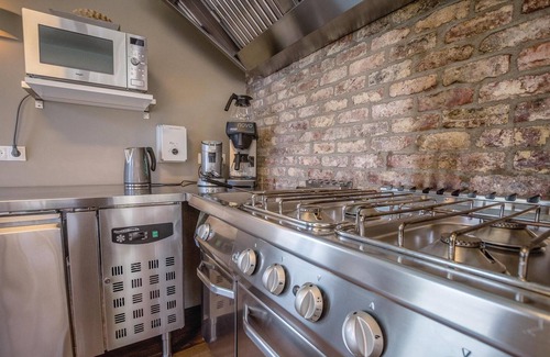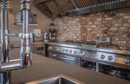 This holiday home in Limburg has twelve comfortable bedrooms. Each room has individual box-spring beds, a flat-screen TV, a private bathroom with shower, toilet, washbasin and a heated mirror. On the ground floor, there are plenty of tables in the large living room so that all guests can eat together. There is also a lounge area with a beautiful gas fireplace and a large flat-screen TV. Next to the living room is the fully equipped semi-professional kitchen with a large gas hob, oven, microwave, deep fat fryer, grill plate, high-speed dishwasher, fridge, freezer and a cooking island with heat lamps. There are four double bedrooms on the ground floor. The first bedroom is equipped with a wheelchair-accessible bathroom. On the first floor there are four double rooms, two triple rooms and two quadruple rooms. One double room is a spacious suite and is located next to the largest bathroom with bath, shower and two washbasins. There is also a meeting room on the first floor, which can also be used as a play area for the children. Various board games and indoor toys are available in the holiday home. There is a table football and shuffleboard in the wine cellar. There is a WC in every bathroom and there are separate WCs on the ground floor and first floor.