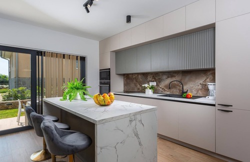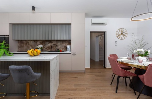 The comfortable and spacious house welcomes you in Matulji above Opatija. Make yourself at home with your loved ones in the bright rooms. The furnishings are tasteful and modern and give the interior of the holiday home a homely ambience. Head to one of the many cosily furnished rooms to relax before rejoining the others in the attractive communal areas to cook, eat and relax together.