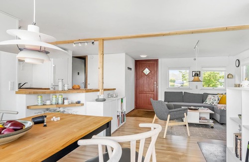 This characterful and cosy house is perfect for a relaxing break from everyday life. A bright living area with a comfortable sofa area, a wood-burning stove and many lovely details create a calming atmosphere. Enjoy the view of the fjord, immerse yourself in your holiday reading or relax with a sociable games evening, while the wood-burning stove provides cosy warmth on cooler days.
