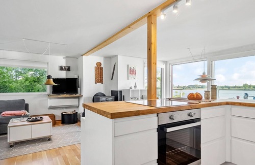 The house is located directly on the water and has its own bathing jetty, so you can take a refreshing dip in the fjord at any time. Discover the tranquil nature around Kertinge Nor by hiking, cycling or relaxing paddle tours through the peaceful fjord landscape. Visit charming Munkebo with its viewpoints and the old Viking mound. Take a trip to nearby Kerteminde or be inspired by culture, history and modern city life in Odense, the birthplace of the fairytale poet Hans Christian Andersen.
