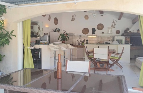 This spacious villa near Clermont-lHérault is a true oasis of peace. In addition to two bedrooms, it has two extra sleeping areas in the separate summer kitchen. There is also a marvellous swimming pool at your disposal. Take a trip into the hinterland, which boasts a rich cultural heritage and unique natural surroundings. There you can take a walk in the Mourèze basin, stroll through the village of Saint-Guilhem-le-Désert or have a picnic by the beautiful Salagou lake. We recommend the weekly Les Estivales de Pézenas event, which takes place in the summer months and features music and wine tastings.