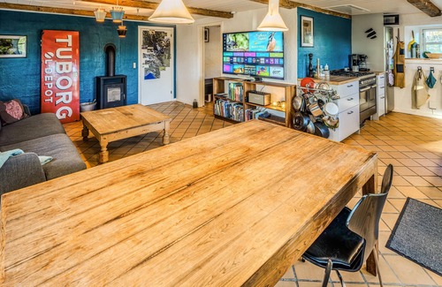 This vacation home near Ry, surrounded by several beautiful lakes and located directly on Denmark's longest river, promises an unforgettable vacation. It is idyllically nestled in a picturesque landscape that invites you to take relaxing walks and exciting adventures. Start your day with a delicious breakfast, which you can prepare in the well-equipped kitchen. Enjoy the rustic atmosphere with exposed wooden beams and attractive furnishings in the cozy living area. You can also play a game of table tennis in the hobby room.