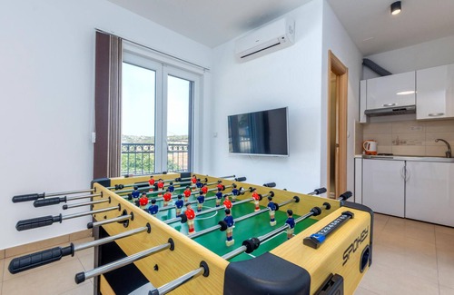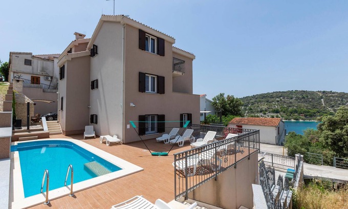 Here you can organize a wonderful family reunion. Come with the relatives or many friends to this huge vacation home and experience a wonderful vacation in Dalmatia. In this accommodation you will find many, well-equipped rooms with several bathrooms and kitchens, so you won't get in each other's way and can comfortably combine your daily routines. In the outdoor area there is just as much space to sunbathe or to take your meals together in the shade. For a quick refreshment in between, the pool provides. For the playful vacationers there are some devices ready for amusement.