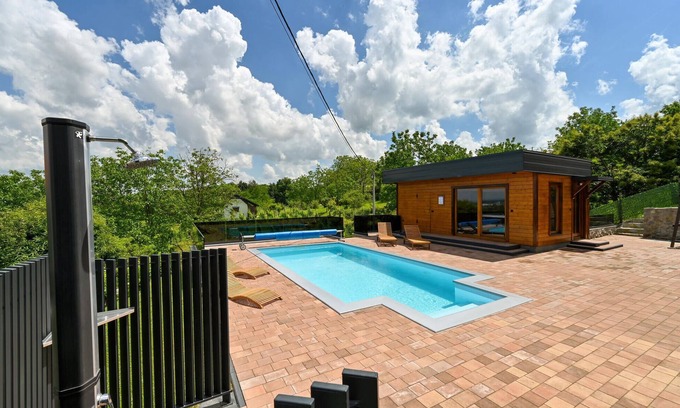 Coziness, comfort and quite a bit of relaxation await you here in this beautiful vacation home near Ludbreg, also known as the center of the world. What could be better than to feel like a second home here and let your loved ones cook for you and put your feet up on the sofa. Step outside from the living space onto the covered terrace and enjoy sunbathing by the pool. For dinner, discover the outdoor summer kitchen with oven and grill. In the basement there is a room for socializing and entertaining where you can retire in the evening.
