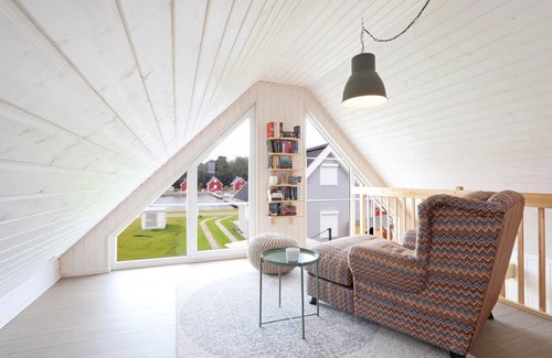 The vacation home is modern and cozy in Scandinavian style. Thanks to the galleried second floor and the huge panoramic windows that extend from the floor to the roof, the house is particularly bright and friendly. The view falls again and again and from everywhere on the enchanting landscape, the water and the colorful hustle and bustle all around.