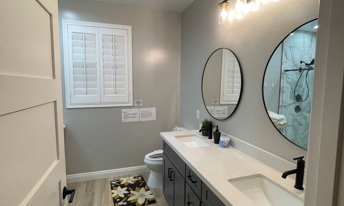 Relax in our 2022 built custom 1000 sqft single story 2bd/1ba house and 1 twin size sofa bed. This is a very private and well-maintained detached house in 1 acre property located at the BACK RIGHT SIDE of the owner's house. This is totally a separate building for total privacy. You will be blown away with spacious quartz kitchen island, modern fixtures, big bathroom with luxurious RAIN SHOWER, SHUTTERS, comfortable HYBRID mattresses and HYPOALLERGENIC luxury pillows. There is a pickleball shared with other guests/owners, players need to sign a waiver form. There is no lights at the Pickleball court, only play when the sun is up.
