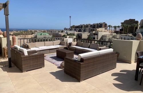 Located in Hurghada, this 2-bedroom, 2-bathroom apartment lets you experience it all. Fans of nature and the outdoors will love being 5 minutes by car from Red Sea and 42 minutes from El Gouna Beach. You'll easily make the quick 7-minute drive to Marina Hurghada or the 5-minute drive to Hurghada City Center.