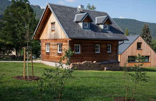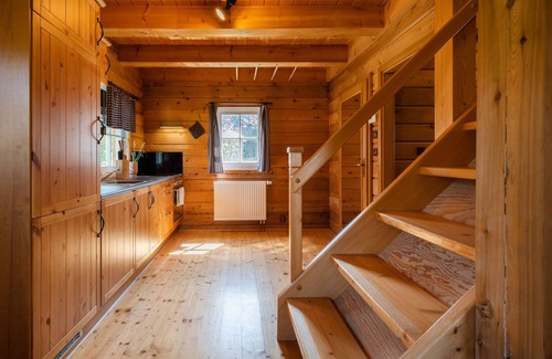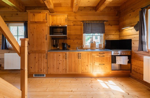 3-room chalet on 2 levels. Spacious, beautiful furnishings: living room with 1 double sofabed, Scandinavian wood stove, dining nook and TV. Kitchen (oven, 4 ceramic glass hob hotplates, kettle, microwave). Shower/WC. Upper floor: 1 room with 2 beds and 1 double bed. Open walk-through room with 1 double bed. Sep. WC. Electric heating, wood heating. Terrace furniture, barbecue. Facilities: washing machine, dryer. Internet (WiFi, free). Please note: suitable for families. Non-smoking house. Maximum 2 pets/ dogs allowed.