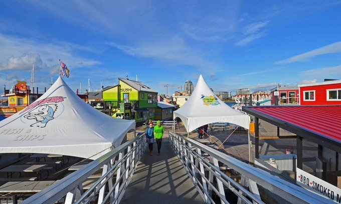 Rock to sleep in funky Fisherman's Wharf - a major tourist attraction. There are 33 amazing whimsical colorful floating homes from tiny to large.