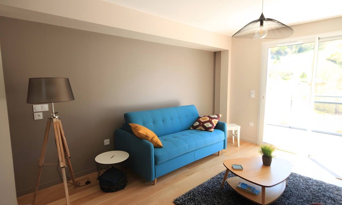 Located in Mont-Dore, this 46 m² apartment can accommodate up to 4 people and features one bedroom as well as a living room with comfortable sleeping arrangements. You will enjoy a bathroom and a well-equipped private kitchen for a pleasant stay. The apartment also offers a television, a washing machine and a dryer, as well as a beautiful mountain view.