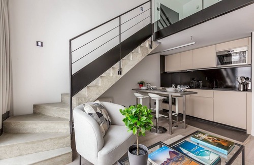 Our “Lofts Duplex” (50 sqm) are on first floor, accessible via a large staircase (no elevator), They have a very large bay window but no balcony. Theyare all fully equipped, with a Queen size bed in mezzanine and a Sofa bed downstairs (on open space). They have two bathrooms, one of which with a spacious rain shower. All apartments are designed with a smart lighting system that gives you control of a general switch (on/off and scenarios) of the lights from the entrance and from the bedside.