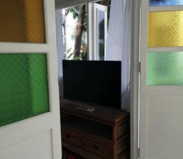 Food & DrinkBottle of water, Tea/Coffee makerMedia & TechnologyTV, Flat-screen TVGeneralHardwood or parquet floors, Ironing facilities, Air conditioning, Carpeted, Private entrance, Iron, Fan, Trash cansBathroomSlippers, Body soap, Towels, Private bathroom, Toilet paper, Hairdryer, Toothbrush, Free toiletries, Bathtub or shower, Shampoo, Bathrobe, Shower capActivitiesHot tubKitchenElectric kettle, Stovetop, Refrigerator, Kitchenware, Microwave, Kitchenette, Toaster, Dining tableOutdoorsOutdoor furniture, Outdoor dining area, Terrace, BalconyLiving AreaSitting areaViewInner courtyard view, Garden view, ViewAccessibilityEntire unit located on ground floorBuilding CharacteristicsDetachedRoom AmenitiesClothes rack |