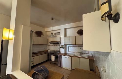 Fully equipped kitchen with oven, stovetop, fridge, freezer, dishwasher, cookware and utensils. Everything needed to prepare meals at home.