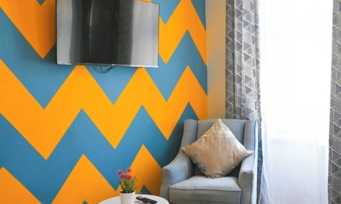 This cozy apartment has everything you would expect from a comfortable apartment in one bright and spacious room. The double bed and single armchair placed in front of the windows overlooking a beautiful street view is the most ideal place to watch the TV series and movies you can choose from flat-screen plasma TV or to relax. The stylish kitchen with red cabinets in the same room is ready for you to cook whatever you want. And after you prepare your meal, you will find a dining table for two right next to you. The white wardrobe in another corner of the room is also suitable for you to place your clothes and belongings. And the bathroom will also be part of your comfort during your stay in the apartment.
