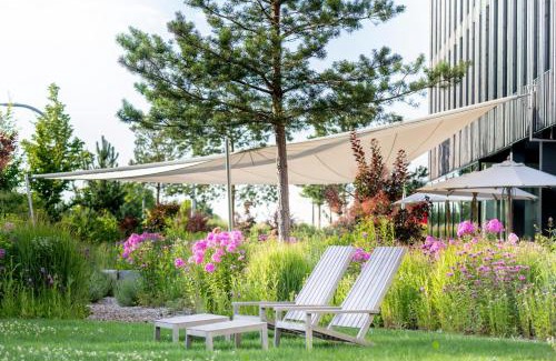 This familiy-owned hotel with its modern Scandinavian design and wooden architecture, is located near the village of Parsdorf in a commercial area, just 656 feet from the A94 motorway and 3.1 mi from the Messe München exhibition grounds. Bader Hotel offers WiFi, a fitness room as well as meeting and conference facilities. The lobby is the centerpiece of the hotel and it features an open fireplace, floor-to-ceiling-windows and comfortable lounge furniture. The adjacent café serves a breakfast buffet in the morning and homemade cakes in the afternoon. The Bader Hotel features modern wood furniture. Each room has large windows, wooden floors, a desk and satellite TV. The private bathroom includes a shower, hairdryer, cosmetic mirror and free toiletries. The hotel's sun terrace and garden are also ideal places for all guests to relax. The surrounding Bavarian countryside is ideal for hiking, cycling and horse riding. Providing free on-site parking, the Bader Hotel is 11 mi from Munich city center and 14 mi from Munich Airport. Guests can leave the car at Messe München and take the subway to Marienplatz.