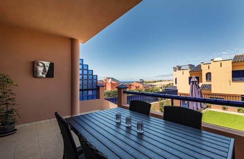Spectacular duplex in the residential area of Meloneras.The main floor is composed of a spacious terrace with garden area,sunbeds andarea with dining table, bright modern living room area with fully equipped american kitchen & a second patio on the back of the property with garden. The top floor has a twin bedroom with fitted in wardrobes, bathroom and the main bedroom with adouble bed anda balcony which overlooks to the sea and to themeloneras golf course.The duplex has parking areaand it is not necessary to make reservations in advance.