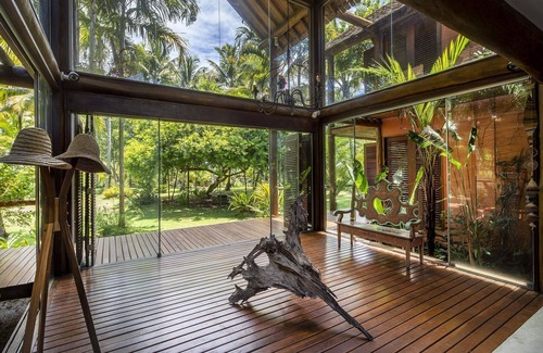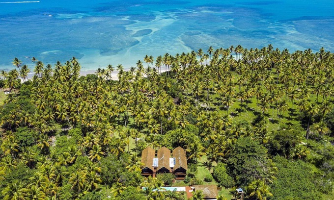 Fantastic beach house made of eucalyptus wood, glass, and waxed concrete. 30 mt of heavenly and quiet beachfront, 20.000m2 of tropical garden in a coconut grove spotted with varying plants and trees, a large kiosk, hammocks, and a large elevated platform with priceless sea view.