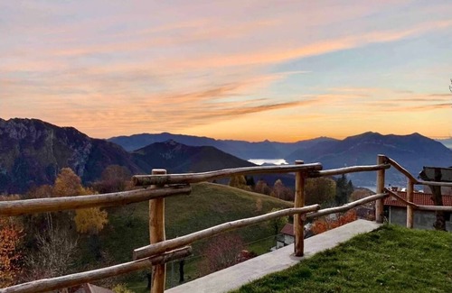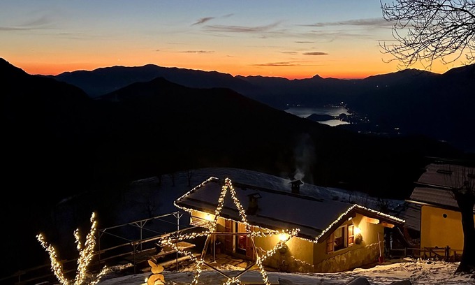 Baita La Lègur is located in the village of Monte Basso (Alta Valsassina, province of Lecco). A truly unique location, with a spectacular 180° view from Valsassina to Lake Como and Lake Lugano, as well as the Alps as a backdrop. A place where the colors envelop you, the eye gets lost in the infinite beauty of the nature that surrounds it, where you would never want to leave. Pets allowed. Among the advantages of this structure we certainly find tranquility, greenery and countless trekking and mushroom paths. Going down 5 minutes by car you will find the village of Narro where you can find basic necessities. Going up 5 minutes by car you will find Alpe Giumello which has a small ski facility and a 3 km cross-country track, as well as a breathtaking view of the lakes. During the winter period, in case of snow, the 70 meters of mule track that divides the car park from the hut may not be shovelled. The apartment consists of a single OPEN SPACE room with cooking area (complete and equipped kitchen), living room with double sofa bed and foldaway bunk bed. Breakfast not included.