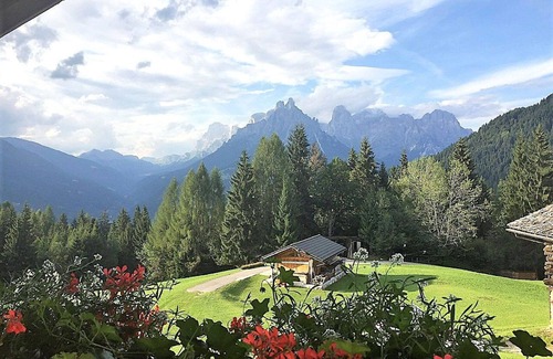 Romantic wooden hut at an altitude of 1137 metres, with a splendid view of the Pale di San Martino (UNESCO heritage site). Here you will spend an unforgettable holiday, breathing in the scent of the Trentino woods even inside, as the chalet and the furnishings (handmade by the owner) are all made of wood. Sitting at the table on the terrace, you can dine while admiring the natural setting of the Pale Mountains, which turn pink at sunset.