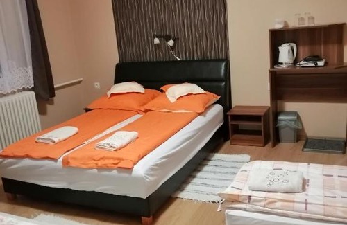 Featuring free WiFi, a barbecue and a terrace, Bakonybéli Patakpart Vendégház offers accommodation in Bakonybél, 2.8 km from Bakony Hills. Free private parking is available on site. The rooms have a flat-screen TV with cable channels. You will find a coffee machine and a kettle in the room. Every room has a private bathroom equipped with a bath or shower. There is a shared kitchen at the property. You can play table tennis at this guest house, and the area is popular for hiking.