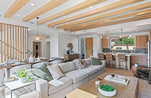 The residence features six comfortable beds spread across four beautifully appointed bedrooms, including one king bed in its own primary suite, one queen bunk bed, one full bunk bed, two queen beds, and an additional primary bedroom with a king bed. With four elegant bathrooms, you'll have ample space and privacy for everyone.